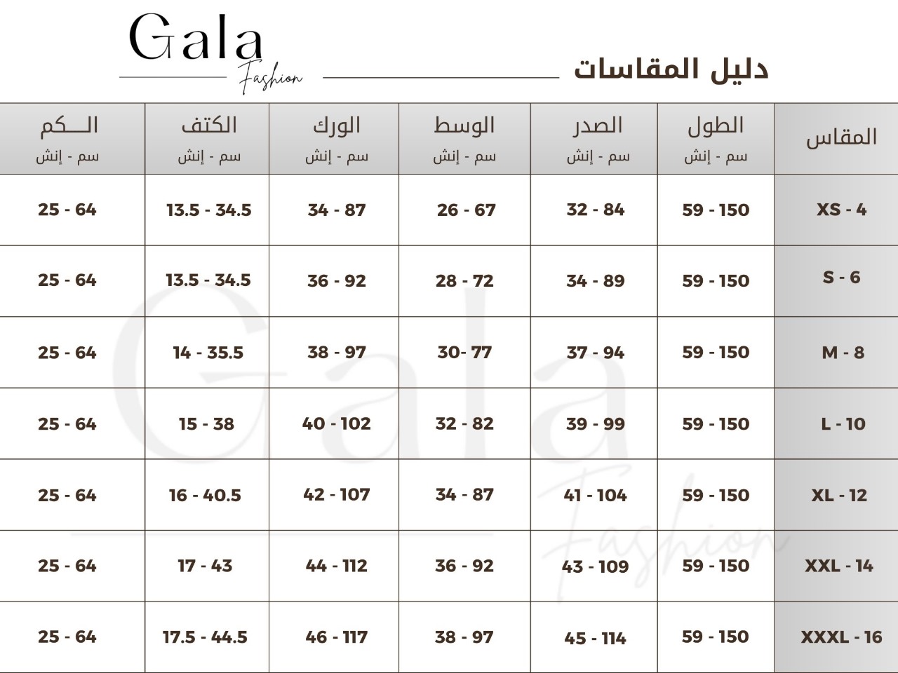 - ولتلبية احتياجاتكم، نوفر جميع المقاسات، ويمكننا تقديم تفصيل حسب الطلب ليتناسب مع مقاسك بشكل دقيق.