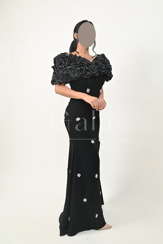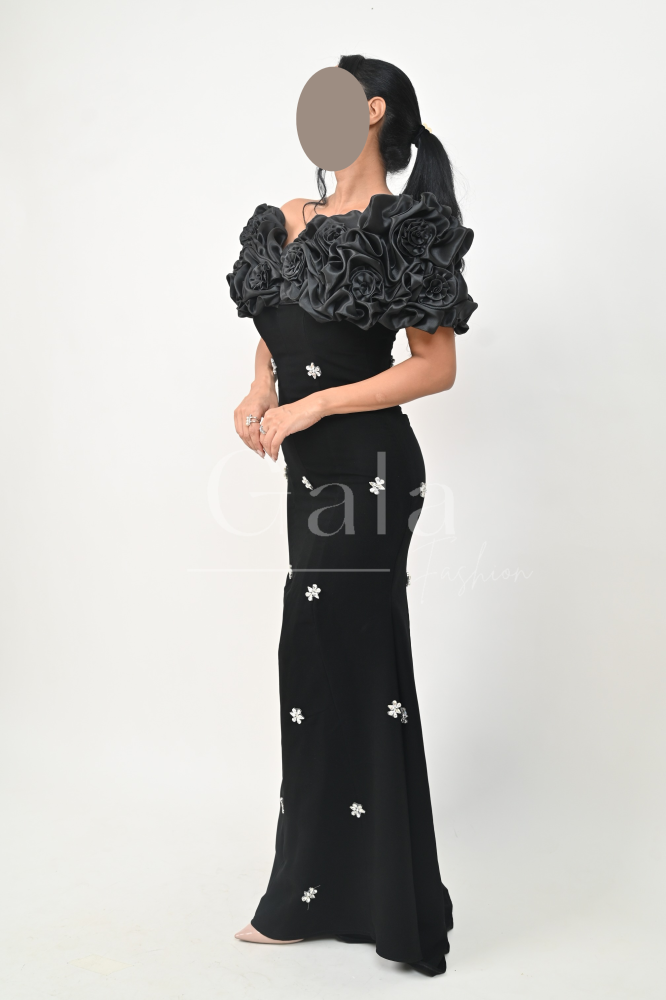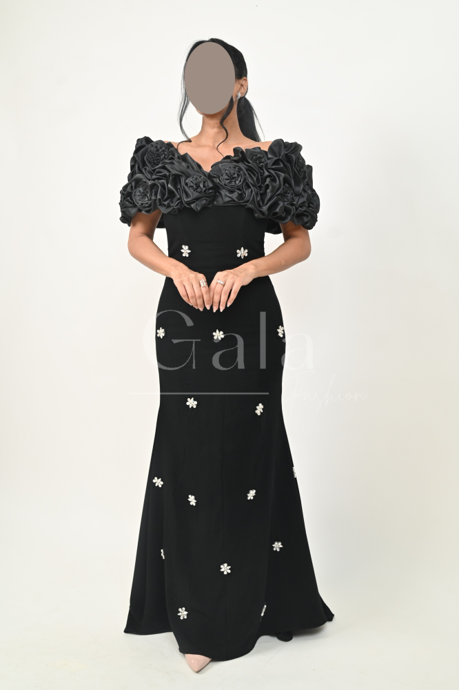 فستان أوف شولدر ماسك طويل بخامة كريب فخمة تنسدل على قوامك بأناقة وتمنحك حضور يطغى على كل مكان. تصميمه يبرز أنوثتك بأسلوب راقي، والأوف شولدر مع الكشكش الناعم يعطيك لمسة رومانسية تبقى محفورة في الذاكرة.